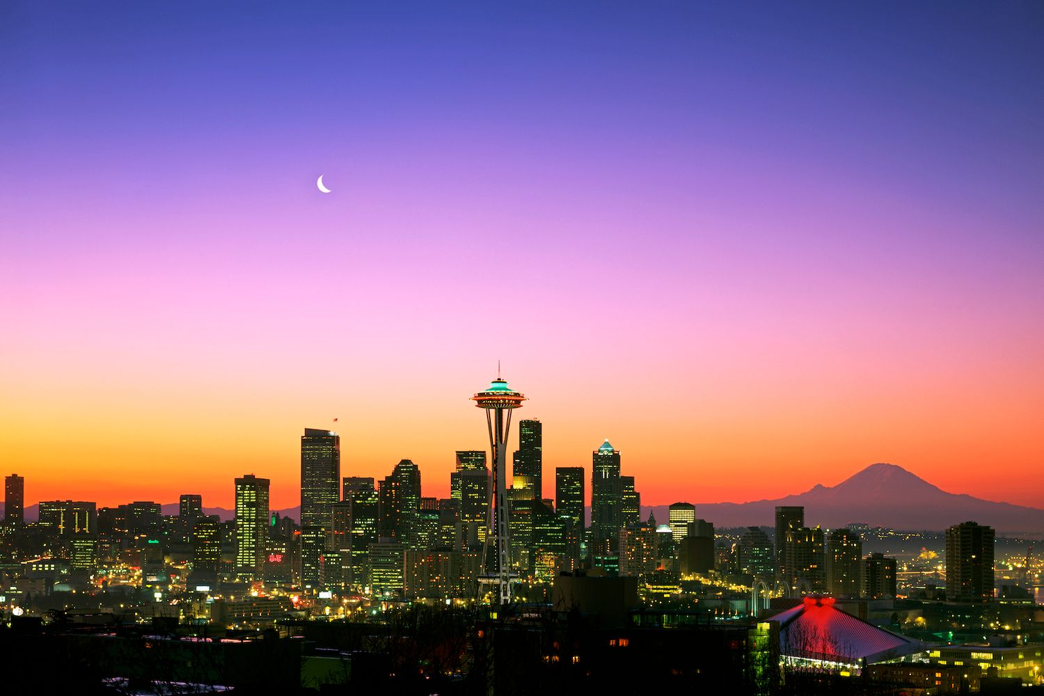 Downtown Seattle splays out in a casual exhibition behind Space Needle’s prolific outline.
