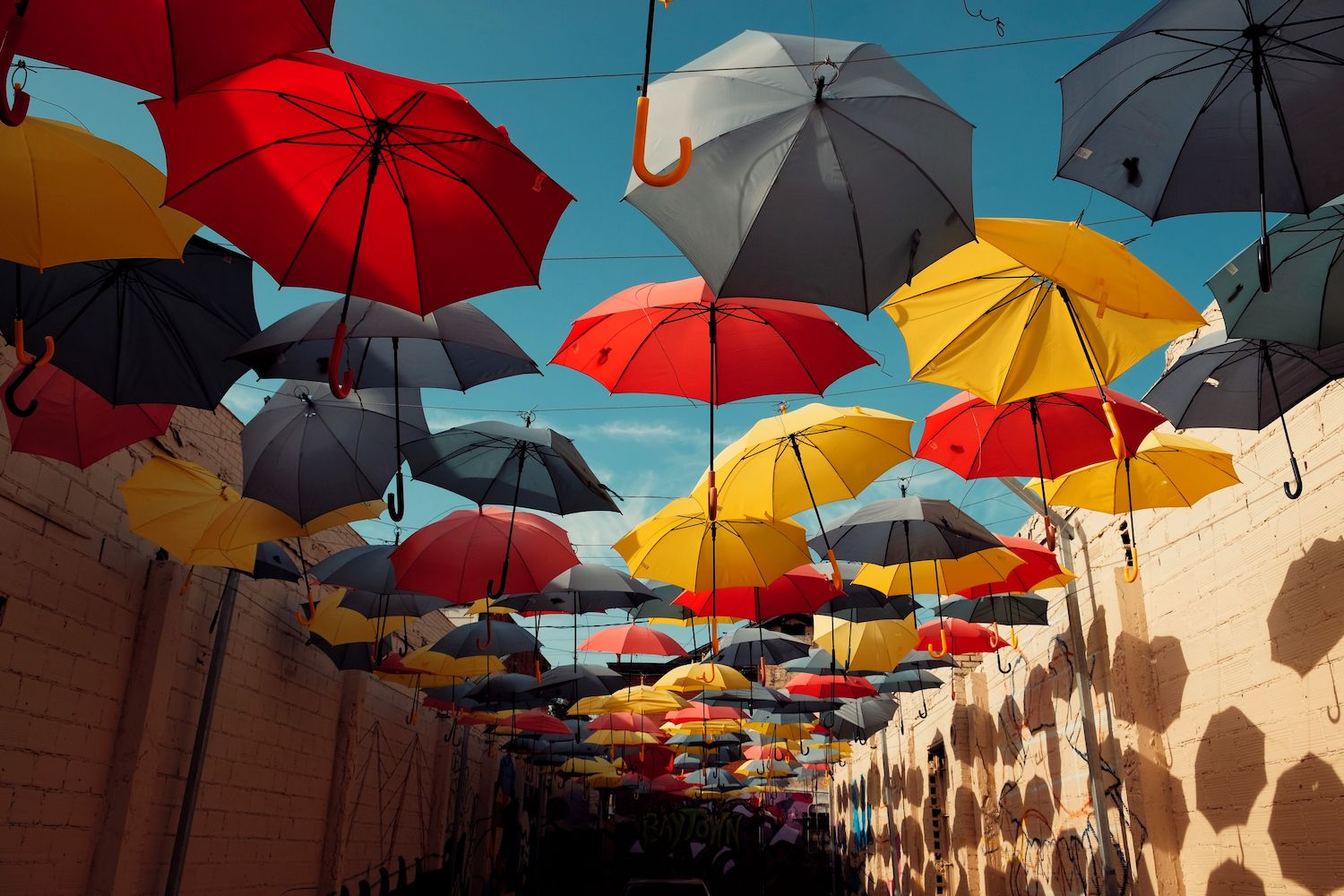 To visit the umbrella alley, head to 124 W. Texas Ave in Baytown.