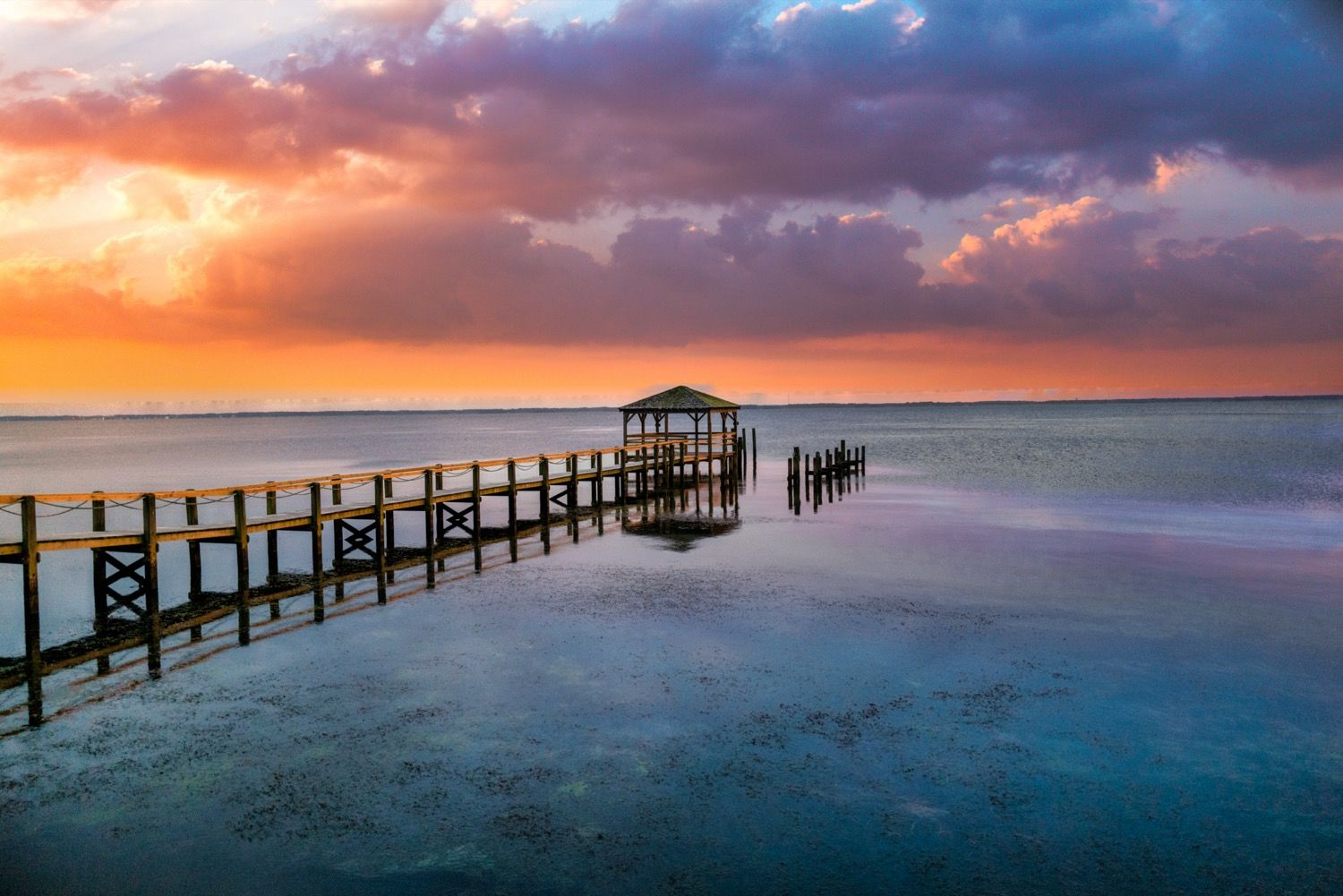 You can take a boat from the dock to witness the incomparable Outer Banks sunset.