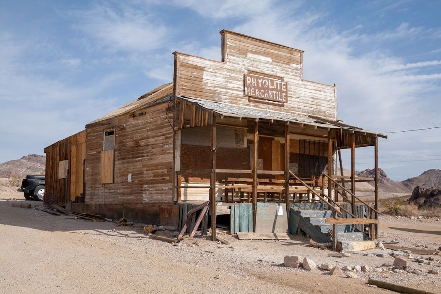 Near Death Valley, Rhyolite’s ruins speak to the boom-and-bust cycle of gold mining towns.