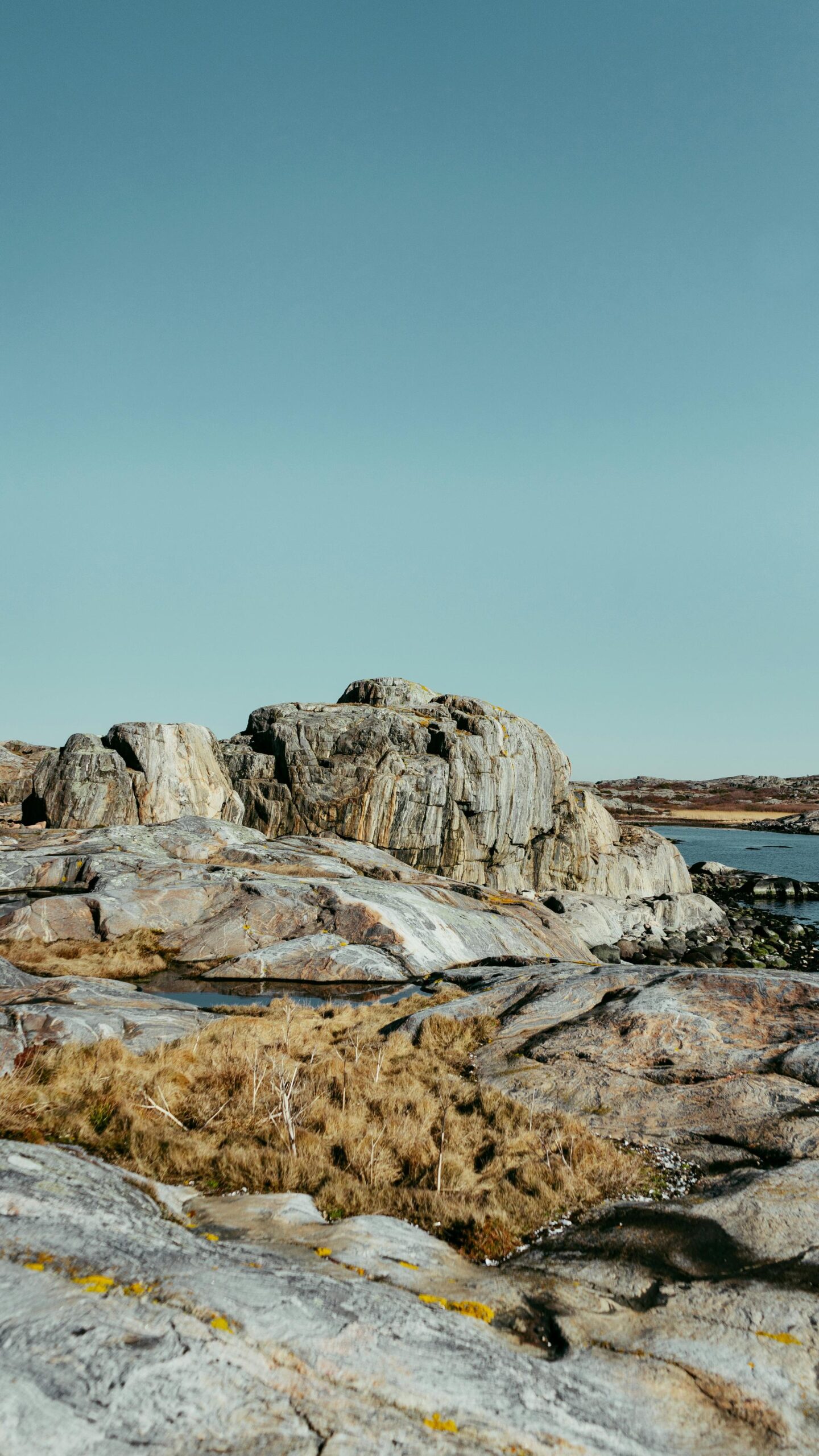 A serene view of the rugged terrain and tranquil waters near Hönö, Sweden, showcasing the natural beauty of the archipelago.