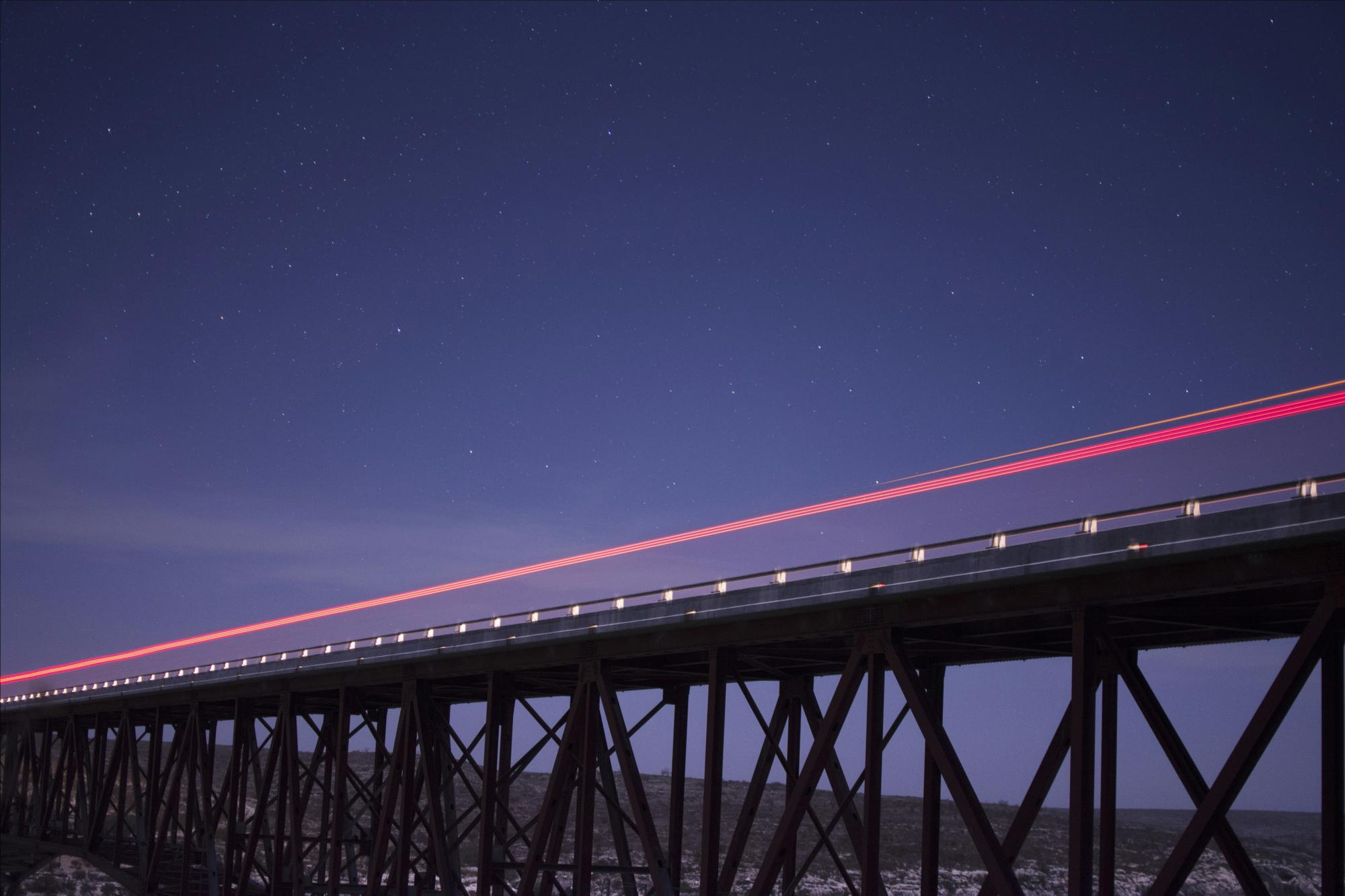 Waco Suspension Bridge, a historic landmark, illuminated at night and reflecting beautifully on the Brazos River in Waco, Texas.